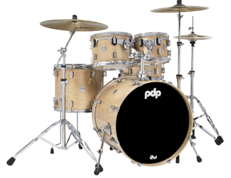 The PDP (Pacific Drums and Percussion) drumset.